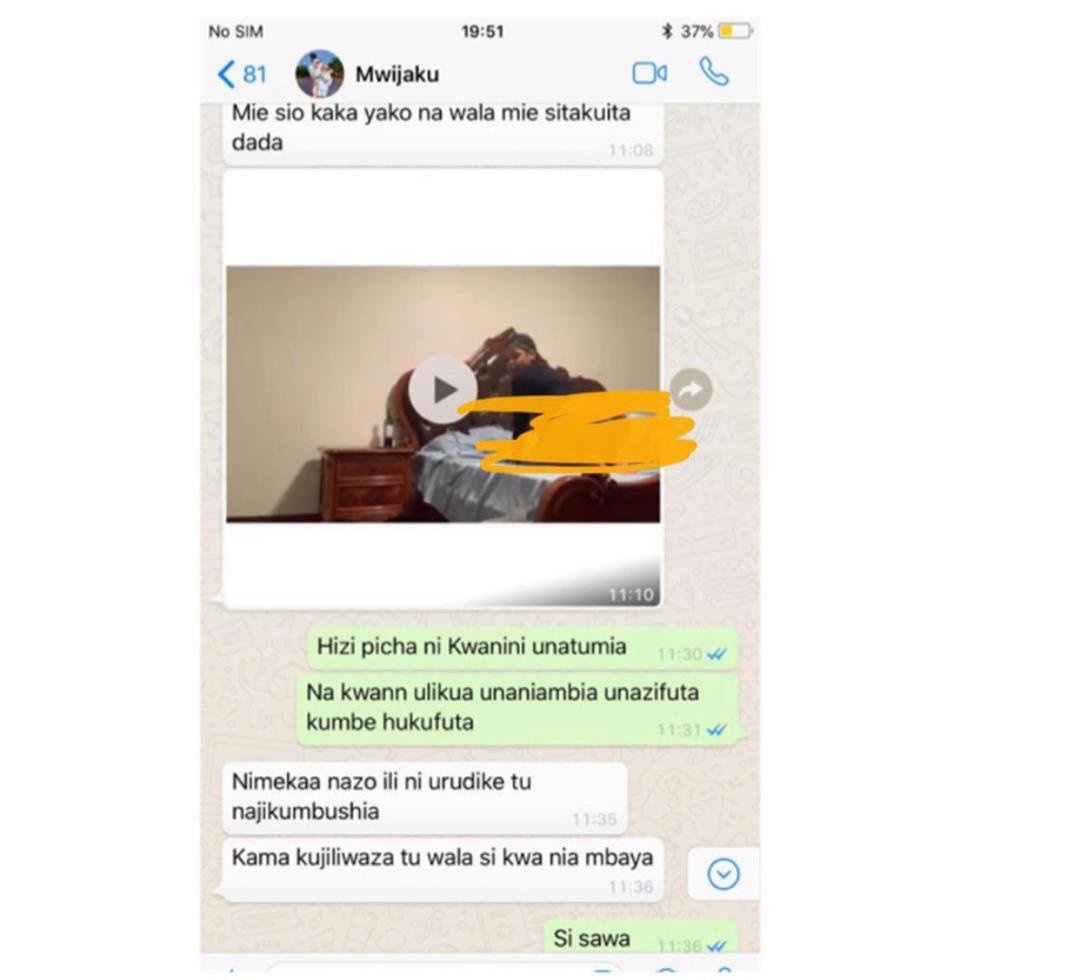 Jamaa akaona isiwe noma ngoja amgusie kuwa ana video yake wakiwa faragha ili dem aogope aende, na jamaa awe anajilia kiutam tu na bila ubishi